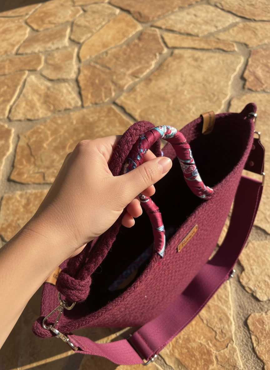Dikiş makinesinde zigzag tekniği kullanılarak üretilmiş olup, güçlü yapısı ve zarif duruşuyla günlük hayatta ve özel anlarda rahatlıkla kullanılabilir.