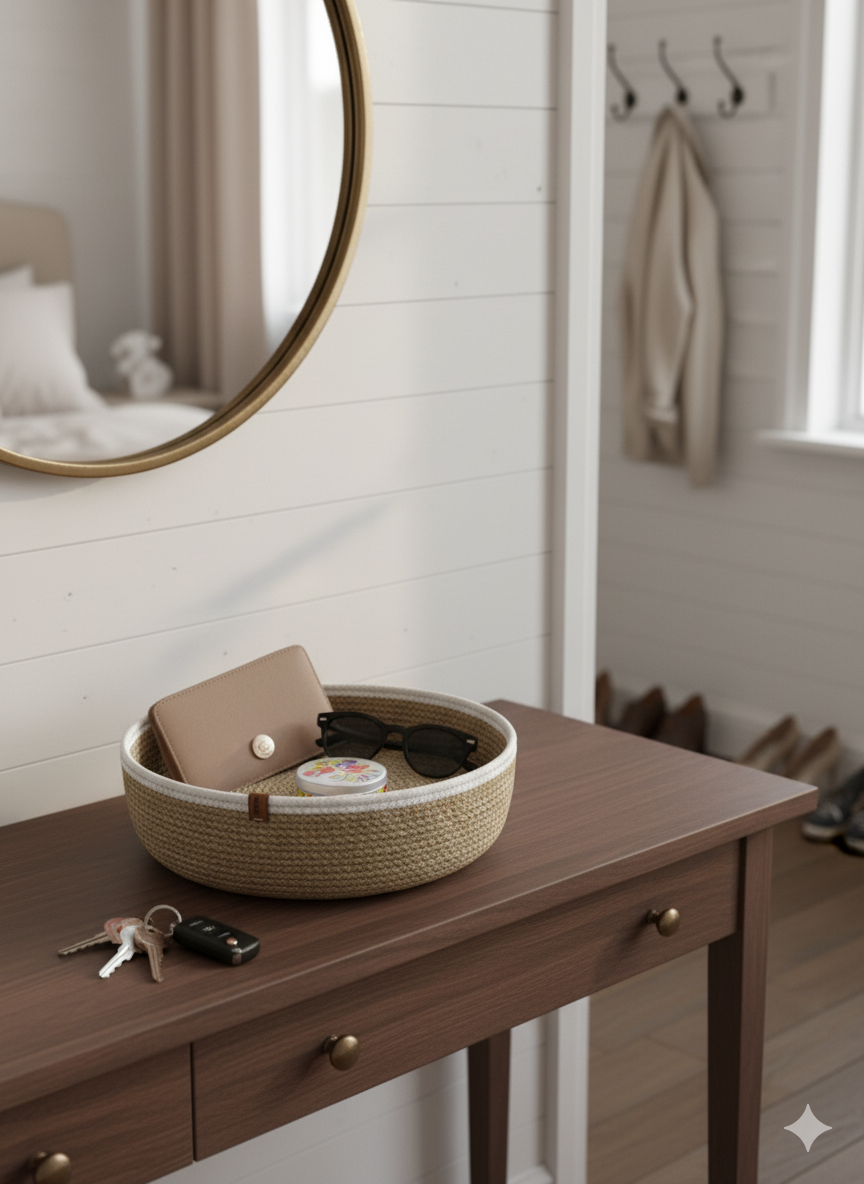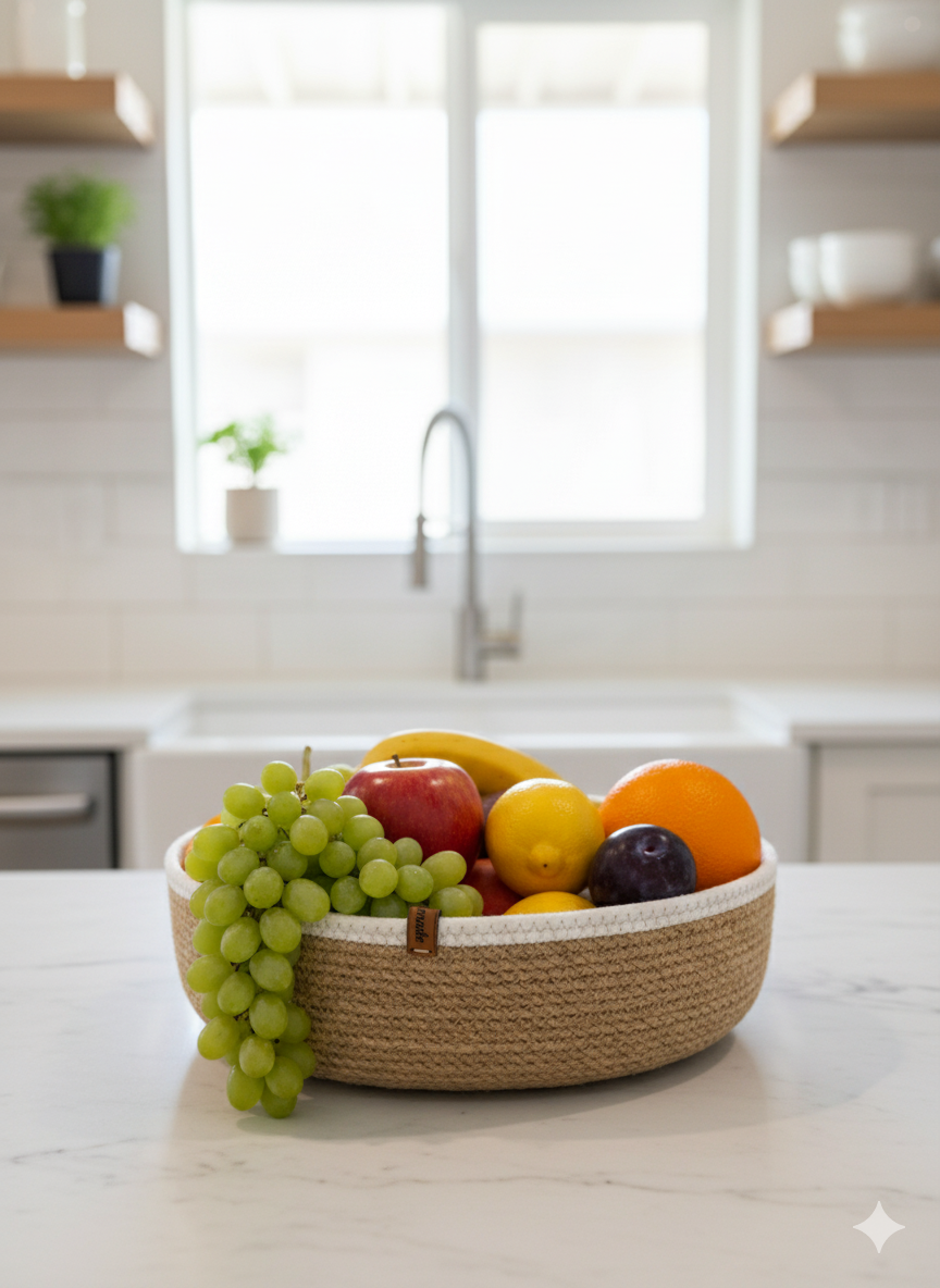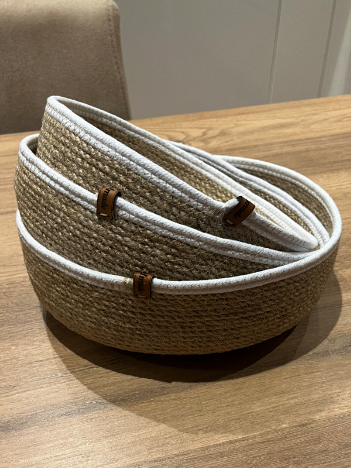 Ürün Açıklaması : El işçiliğiyle dikiş makinasında zigzag tekniği ile dikilerek üretilen bu yuvarlak sepet hem şık bir ev dekorasyon ürünü hem de kullanışlı bir düzenleyici işlevi görür. Jüt kordon ipten üretilmiştir. Nemli deterjanlı bezle silinerek temizliği sağlanabilir. Yapıştırıcı ya da silikon kullanılmamıştır, çevre dostudur