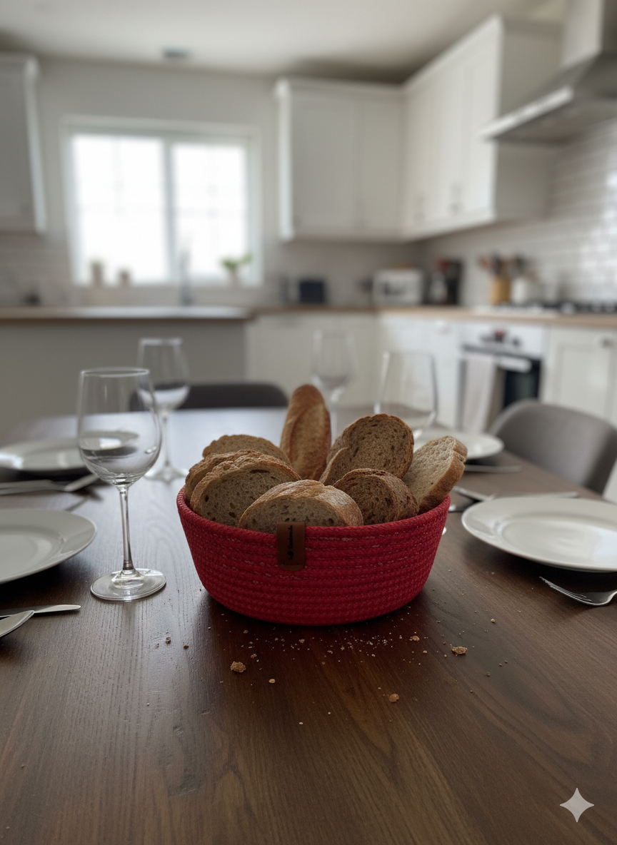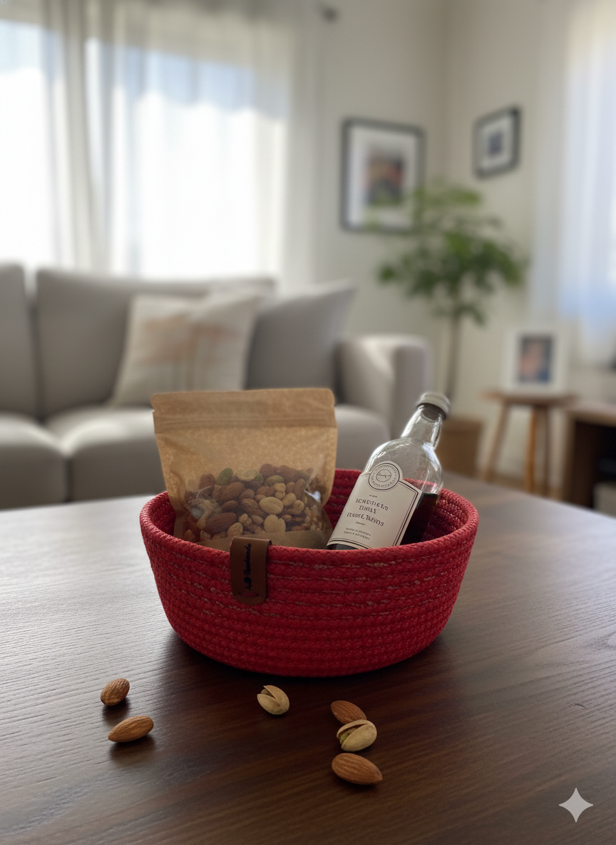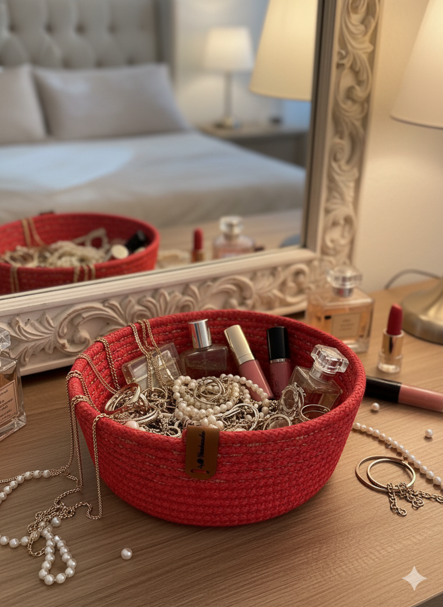 Ürün Açıklaması : El işçiliğiyle dikiş makinasında zigzag tekniği ile dikilerek üretilen bu yuvarlak sepet hem şık bir ev dekorasyon ürünü hem de kullanışlı bir düzenleyici işlevi görür.