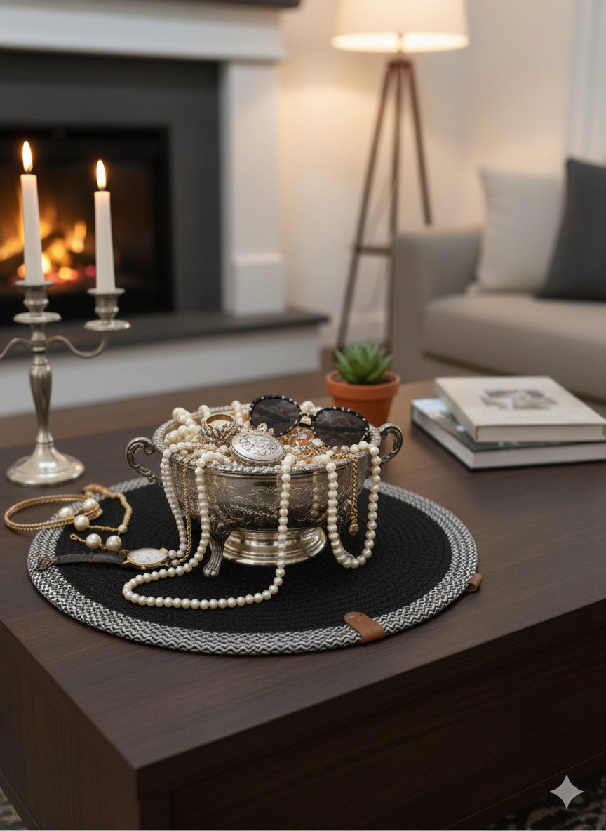 Ürün Açıklaması : El işçiliğiyle dikiş makinasında zigzag tekniği ile dikilerek üretilen bu yuvarlak supla hem şık bir masa dekoru hem de kullanışlı bir koruyucu altlık işlevi görür. Yüksek kaliteli polyester tress kordon ipten üretilmiştir. Sıcak ve soğuk tabaklara dayanıklıdır, kolay temizlenir. Nemli deterjanlı bezle silinebilir ya da düşük devirde hassas programda çamaşır makinasında yıkanabilir.